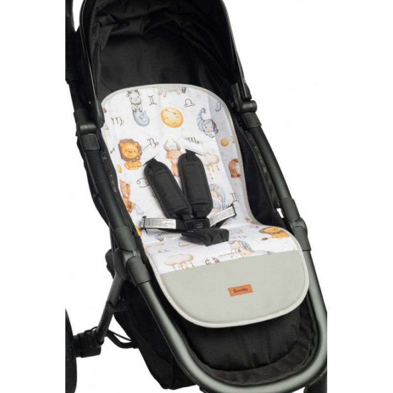 Vložka do kočíka, mušelín, Hviezdne zvieratká, šedá