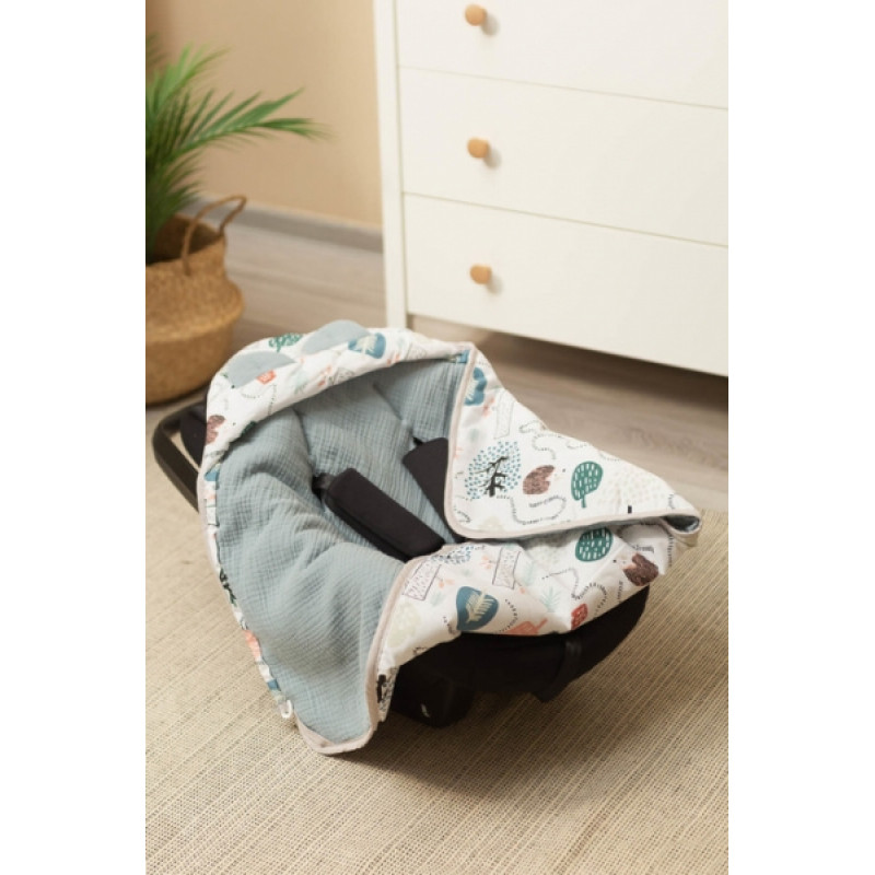 Zavinovačka 2v1 do autosedačky, kočíka, mušelín, bavlna - Ježko Toník, zelená