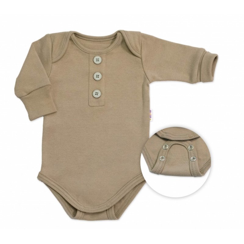 Rastúce body NATURE, dlhý rukáv s gombíkmi, bavlna, fango, 56/62