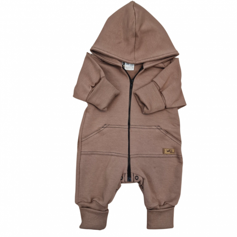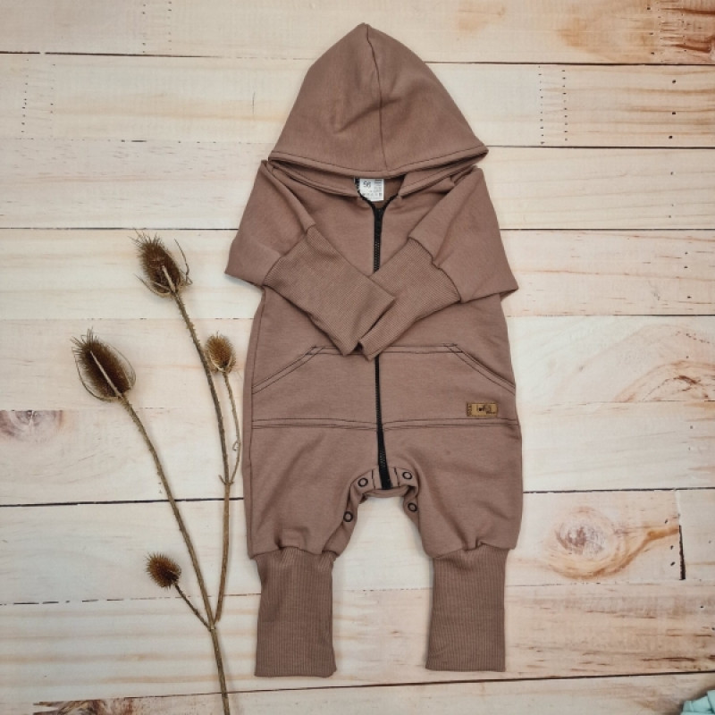 Detský teplákový overal s predĺženými nápletmi, čokoláda, veľ. 74