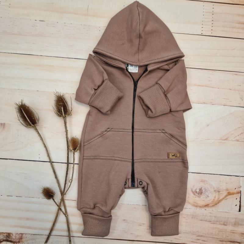 Detský teplákový overal s predĺženými nápletmi, čokoláda, veľ. 80