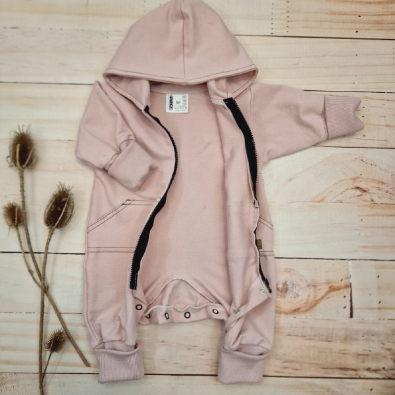 Detský teplákový overal s predĺženými nápletami, púdrovo ružový, veľ. 74