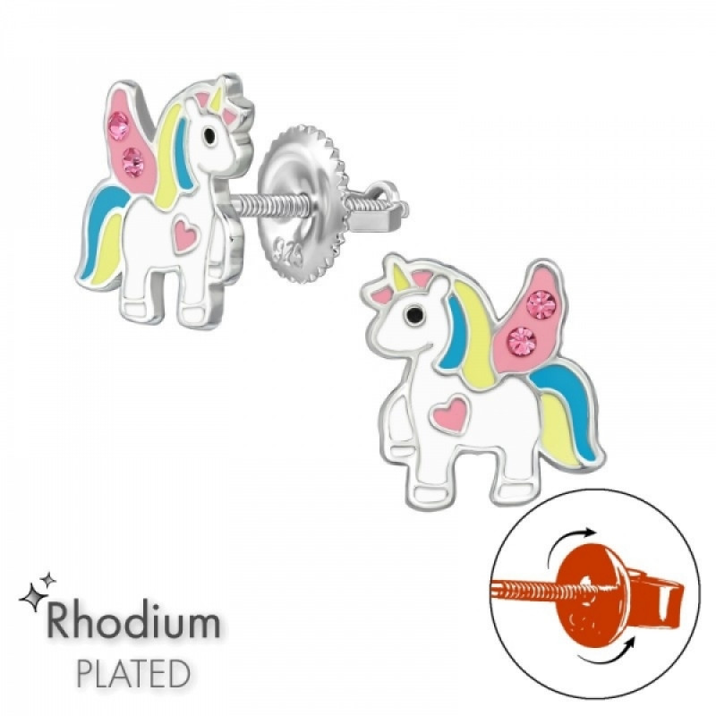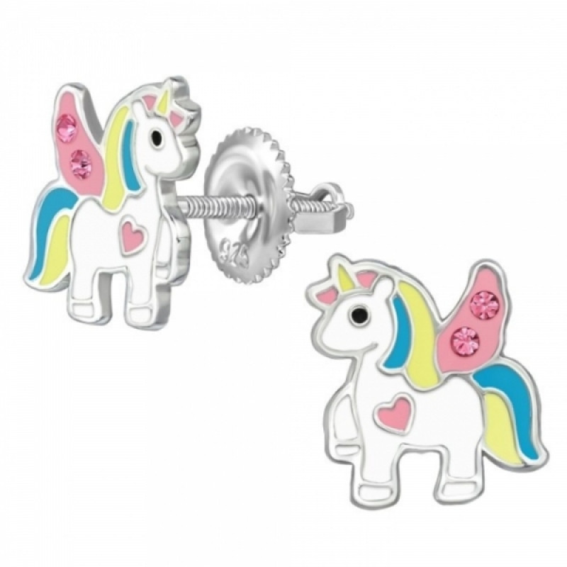 Detské strieborné náušničky Jednorožec Angel Love, so skrutkovacou puzetou