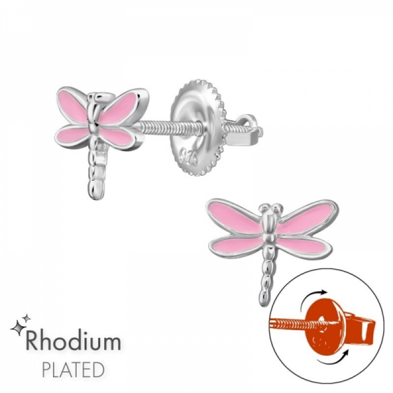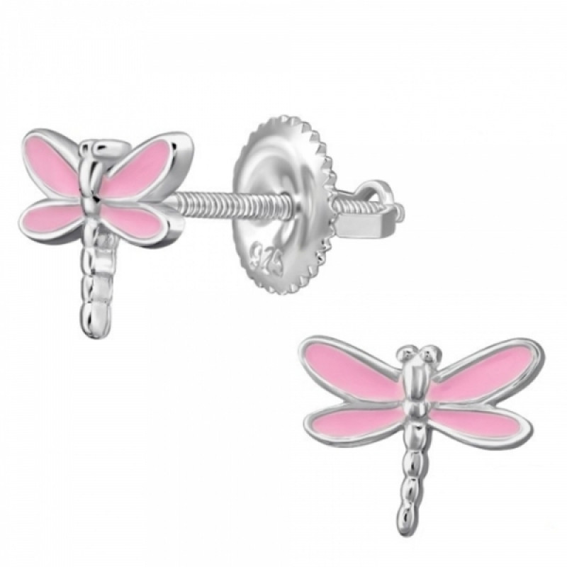 Detské strieborné náušničky Vážka, so skrutkovacou puzetou
