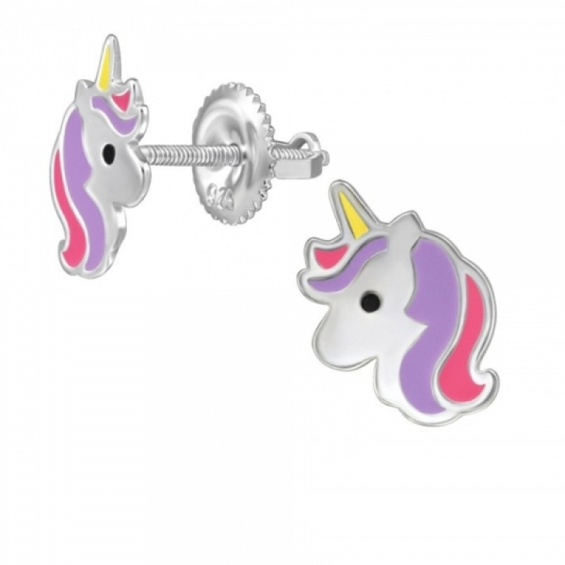 Detské strieborné náušničky Jednorožec, so skrutkovacou puzetou