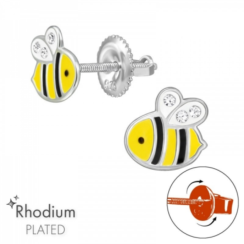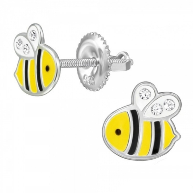 Detské strieborné náušničky Včielky, so skrutkovacou puzetou