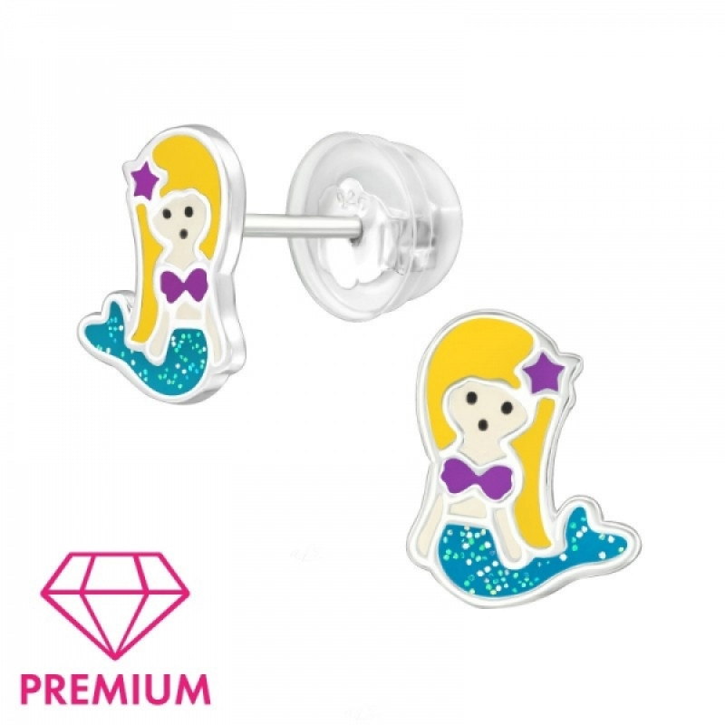 Detské strieborné náušničky Morská panna premium, puzetové, silikón