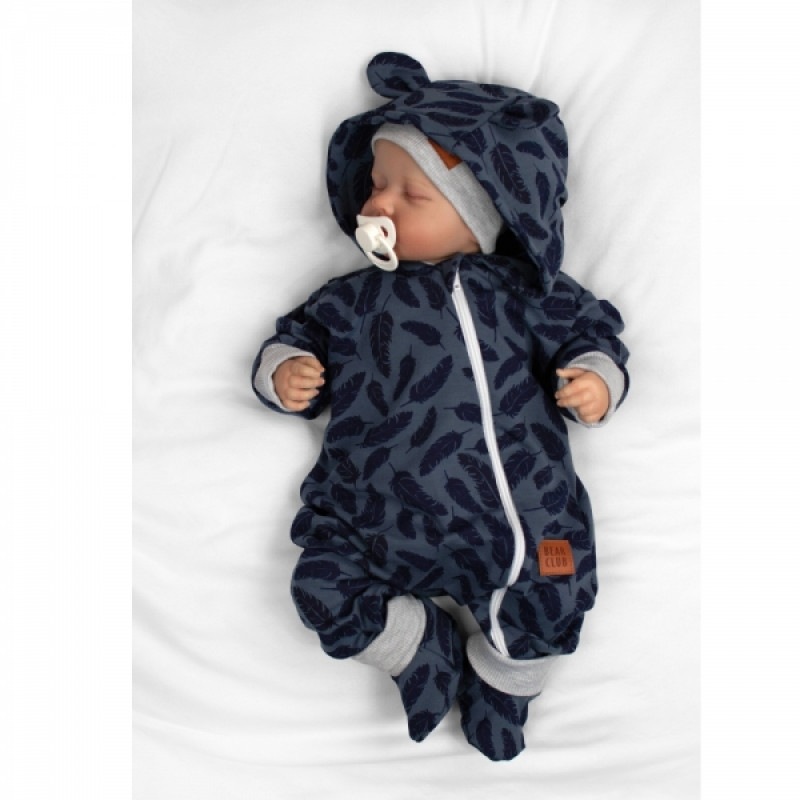 Rastúci teplákový overal pre bábätko, čiapky, topánky, 3D, Nature - jeans pierka