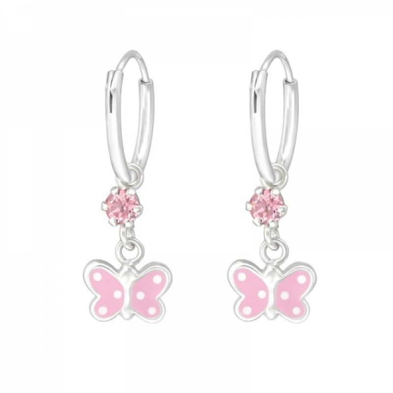 Detské krúžkové náušnice s ružovým motýlikom – perfektná voľba pre vašu malú princeznú.