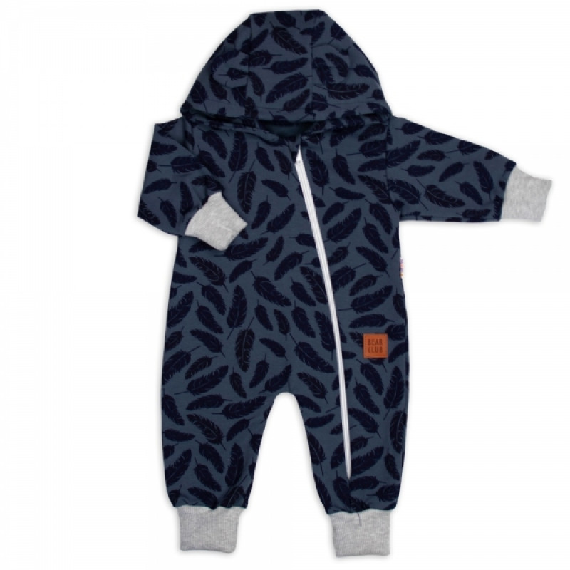 Rastúci teplákový overal pre bábätko, čiapky, topánky, 3D, Nature - jeans pierka, 80/86