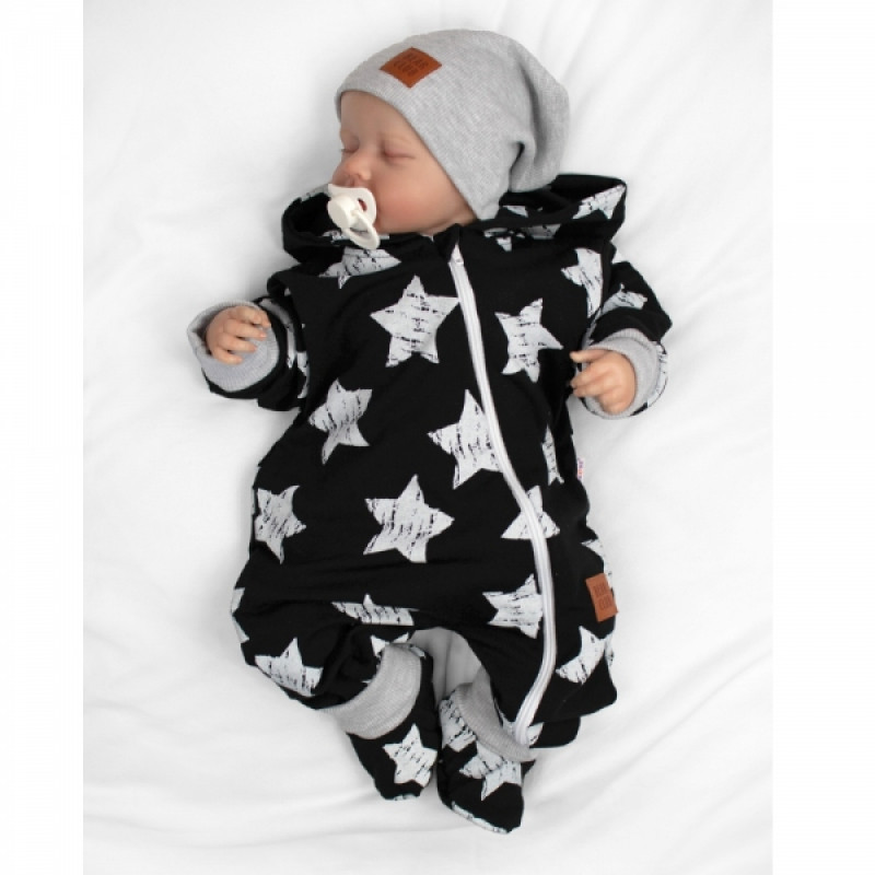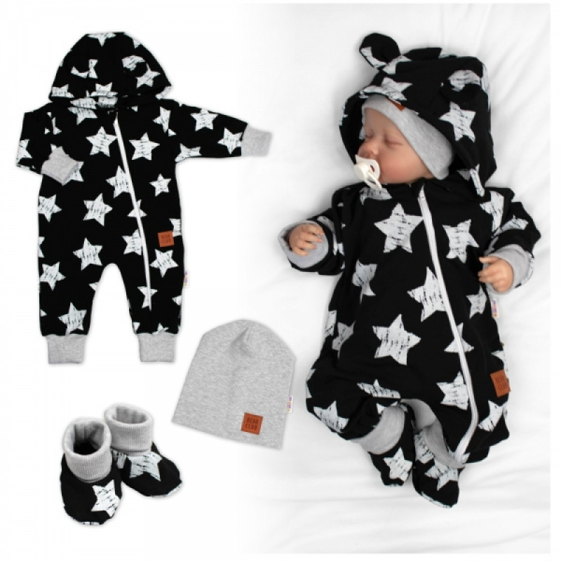 Rastúci teplákový overal pre bábätko, čiapky, topánky, 3D, Nature Star - čierny, 68/74