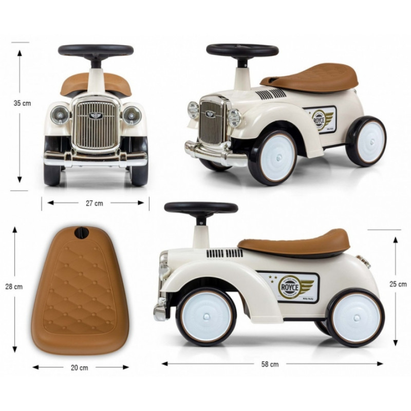 Jazdítko, odrážadlo retro Royce Milly Mally, biele