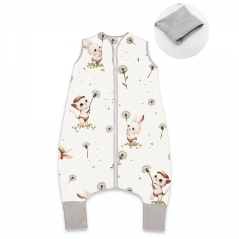 Letný spací vak so zahrnovacími nohavičkami, bavlna, Kocúrik a púpava - biela, veľ. S