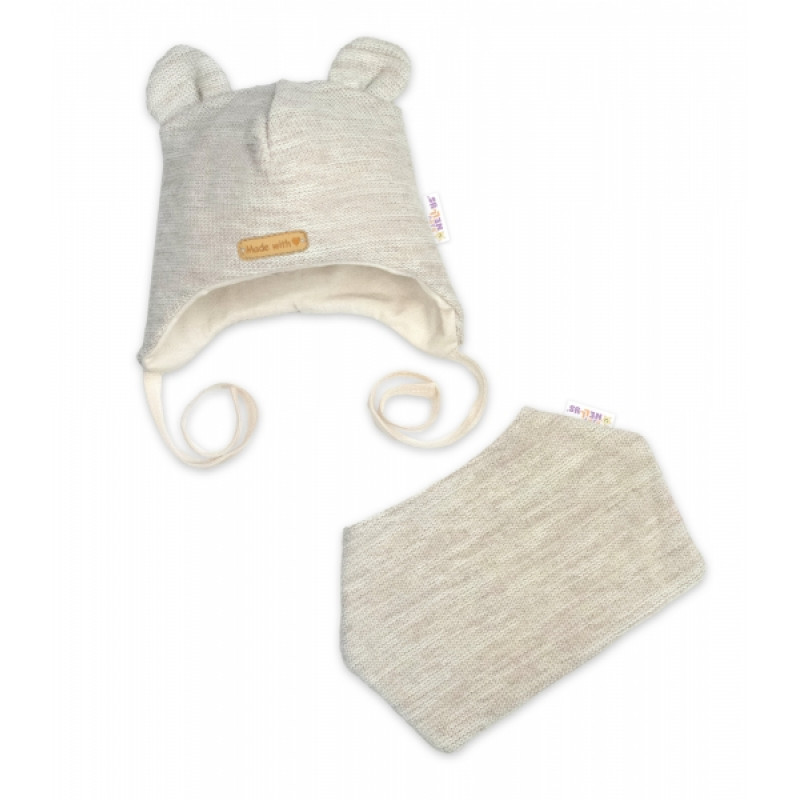 Pletená čiapka s bavlnenou podšívkou a šatkou 2v1 Teddy Hand made Baby Nellys je ideálnou voľbou!
