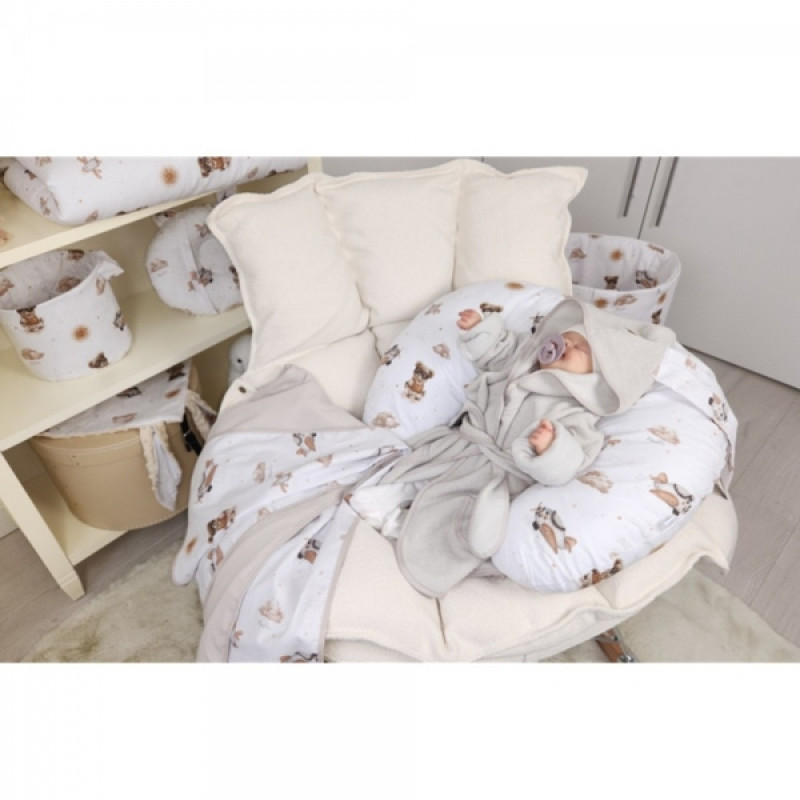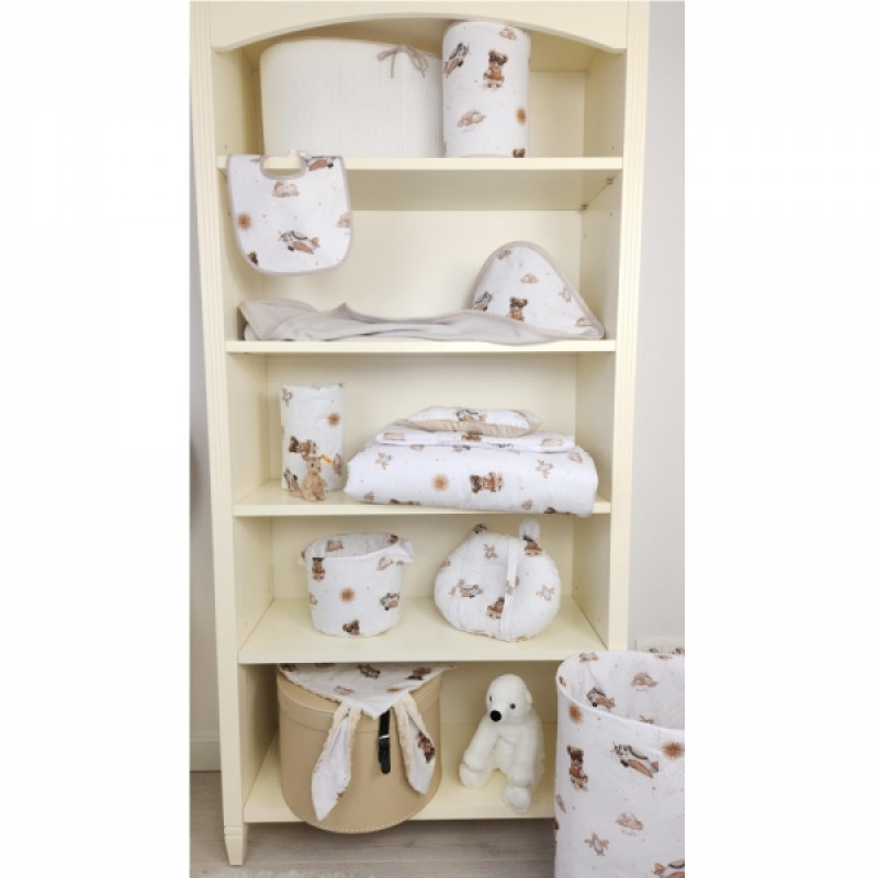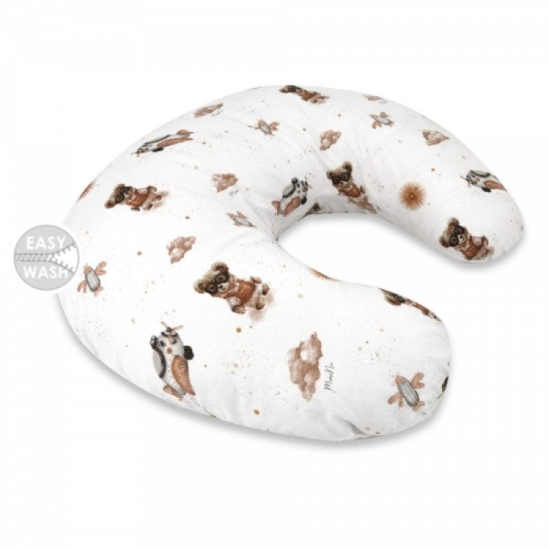 Dojčiace vankúš/podkova, bavlna, Méďa pilot - biela, béžová