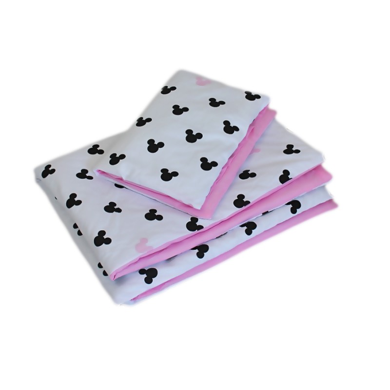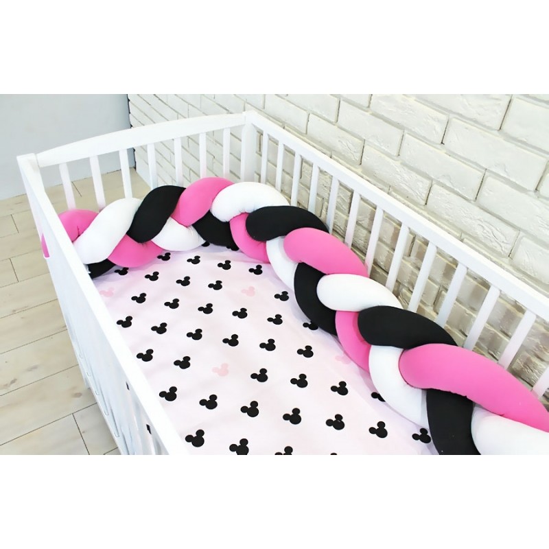Baby Nellys Mantinel pletený vrkoč s obliečkami Mickey - černá, biela, růžová