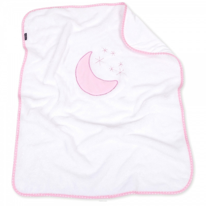 Obojstranná chlpáčková dečka s vyšívkou 75 x 90 cm, Mesiac biela/růžová