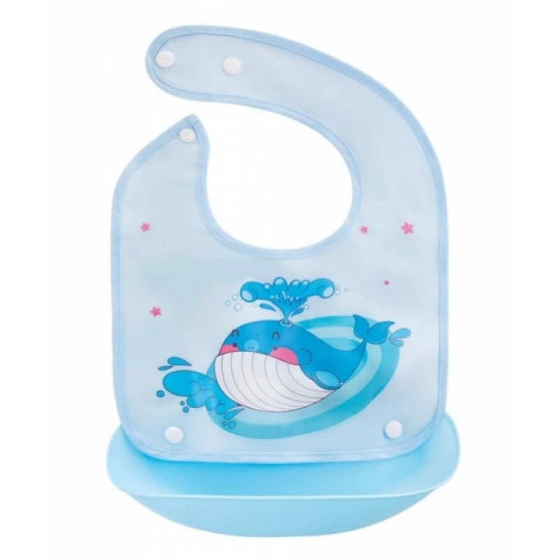Silikónový podbradník s vreckom Veľryba, modrá