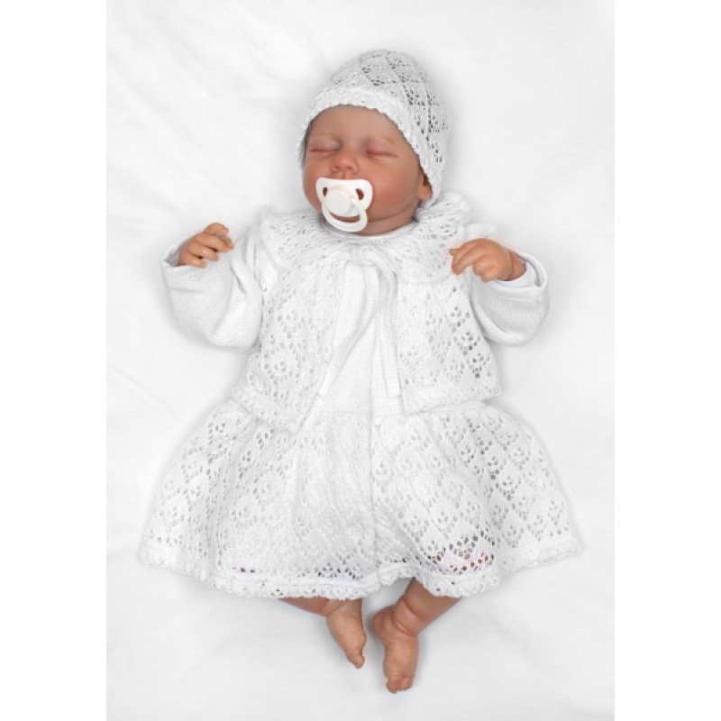 Luxusná pletená sada pre dievčatko na krstiny a oslavy, alebo na cestu z pôrodnice – 3D Design.
