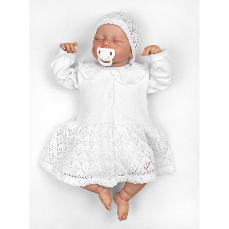 Luxusná pletená sada pre dievčatko na krstiny a oslavu 4D design - biela
