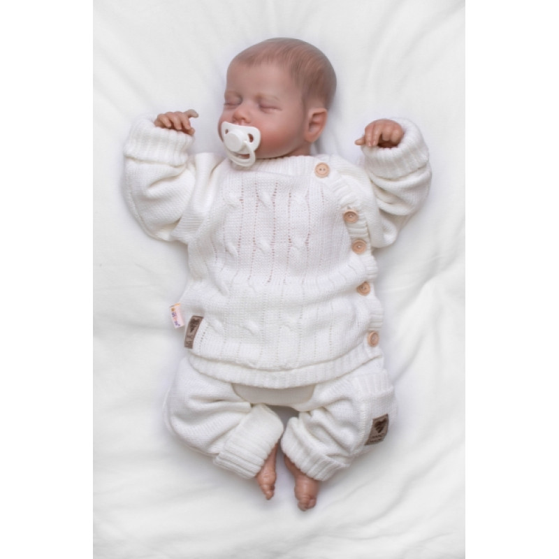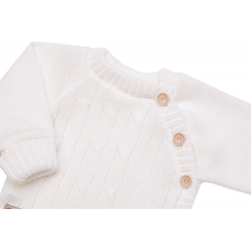 Rastúci pletený svetrík a nohavice s vreckom Hand Made 2D, Nature - smotanový