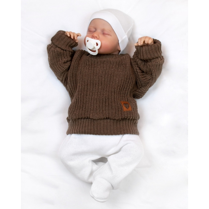Rastúci oversize pletený svetrík pre bábätko, hnědý, 92/98