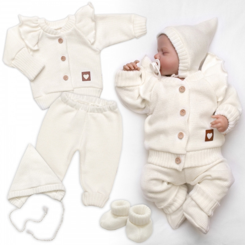 Táto luxusná 4D sada, pletený svetrík, nohavice, čiapočka a topánočky Hand Made 4D, je presne to, čo vaše bábätko potrebuje pre dokonalé pohodlie a štýl.