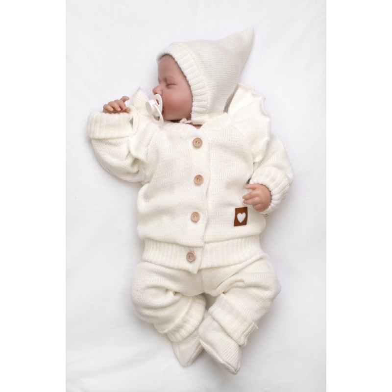 Veľ. 68/74, farba: smotanová, Baby Nellys ČR, 4D-svetrík, tepláčky, čiapočka, topánočky