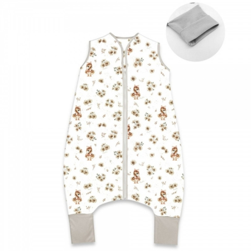 Letný spací vak so zahrnovacími nohavičkami, bavlna, Kačičky - biela, béžová, S