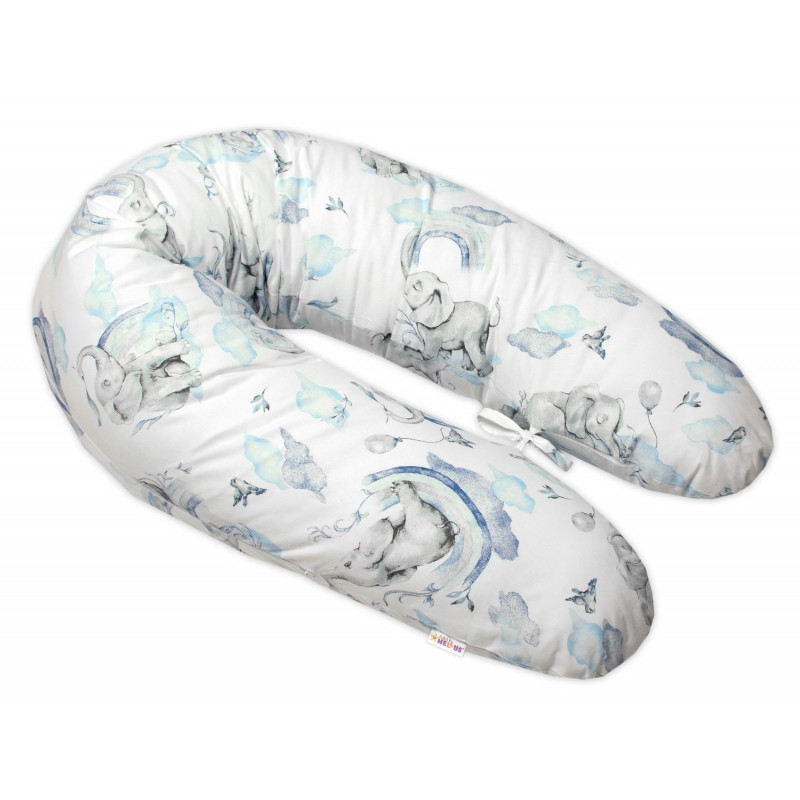 Dojčiace bavlnený vankúš - relaxačná poduška Baby Nellys, Slon a Dúha, modrý