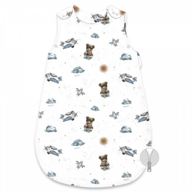 Spací vak, bavlna, 74 cm, Méďa pilot - biela, modrá