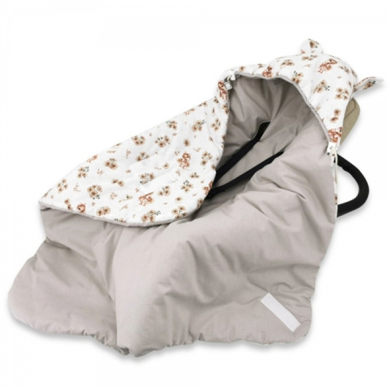 Zavinovacia deka s kapucňou bavlna, 90x90cm, Kačički - biela, béžová
