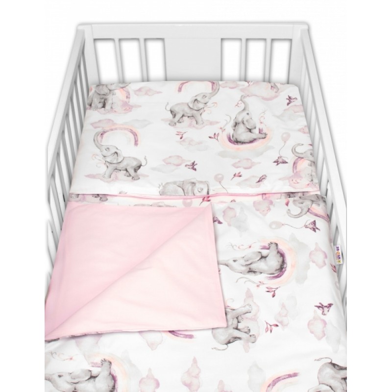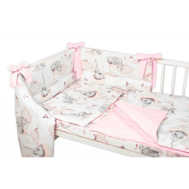 3-dielna sada mantinel s obliečkami Baby Nellys, Slon a Dúha, ružová/biela