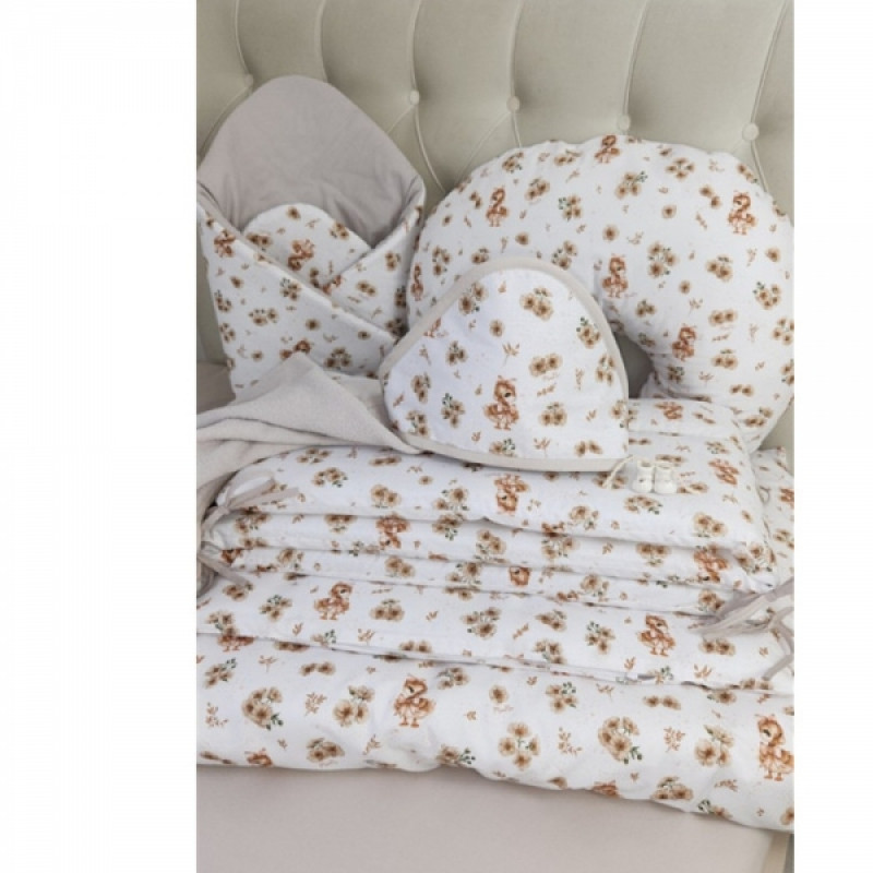 Dojčiace vankúš/podkova, bavlna, Kačički - biela, béžová