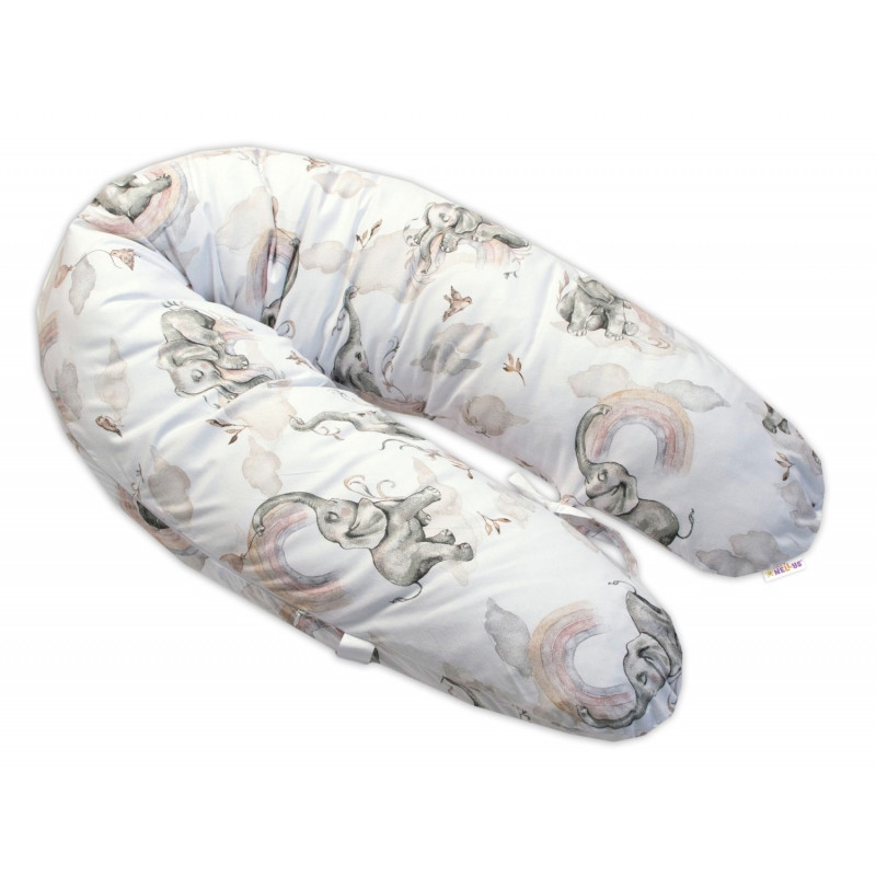 Baby Nellys Dojčiace bavlněný vankúš - relaxačná poduška, Slon a dúha, biely