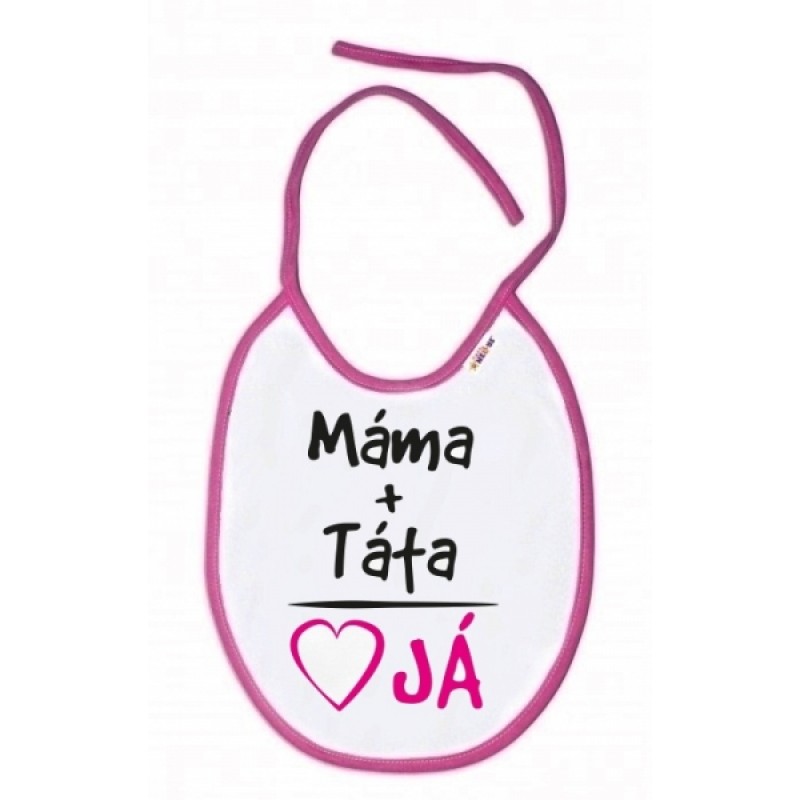 Baby Nellys Nepremokavý podbradník Máma + Táta, 24 x 27 cm - ružový