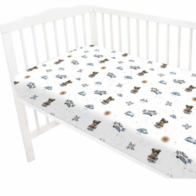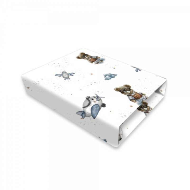 Prestieradlo do postieľky 140x70cm, bavlna, Méďa pilot - biela, modrá