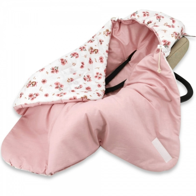 Zavinovacia deka s kapucňou bavlna, 90x90cm, Kačički - biela, púdrovo ružová