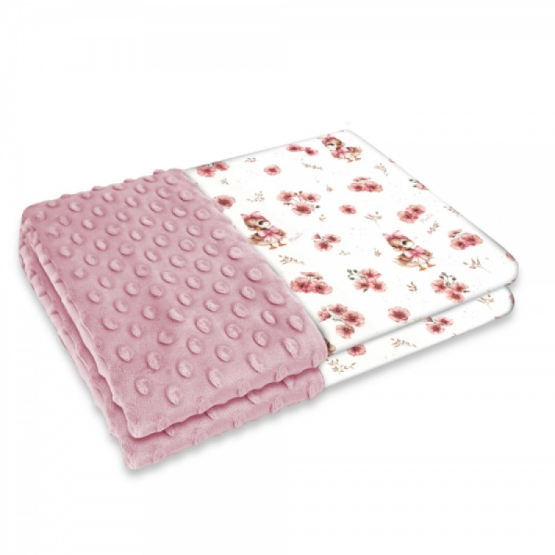 Obojstranná deka, Bavlna/Minky 100 x 75 cm, Kačičky - biela, malinová