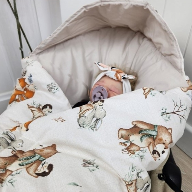 Zavinovacia deka s kapucňou bavlna, 90x90cm, Friends time - latte, béžová