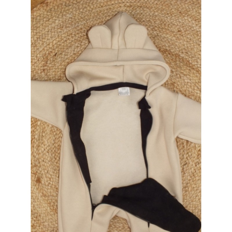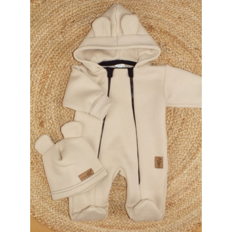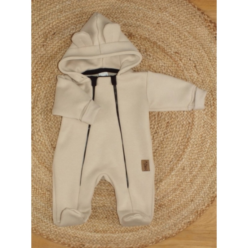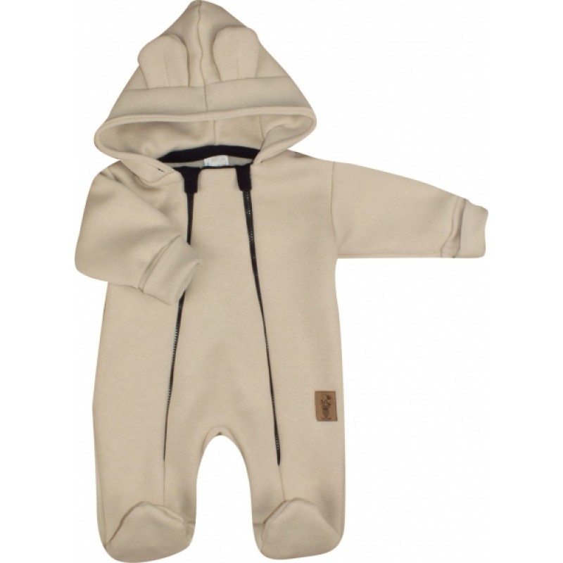 Oteplený detský overálek so šľapkami a kapucňou, Kazum, béžový, veľ. 80