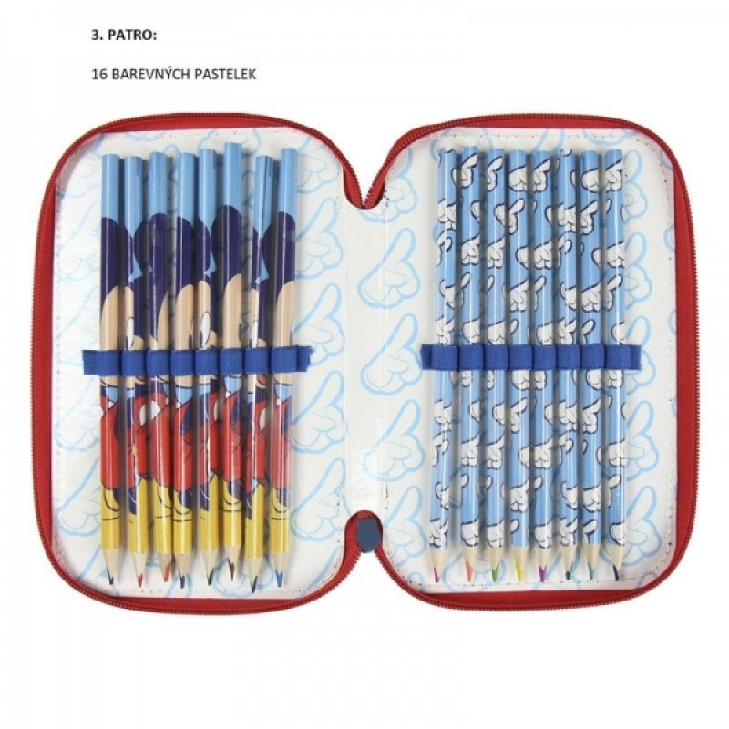 Školský peračník trojposchodový s náplňou Myšiak Mickey 3D