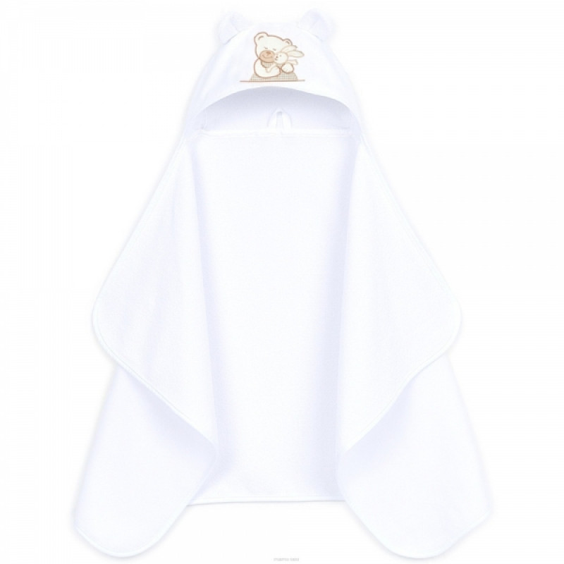 Maxi osuška, pončo s kapucňou Macko so zajčikom, 70x120cm - biela