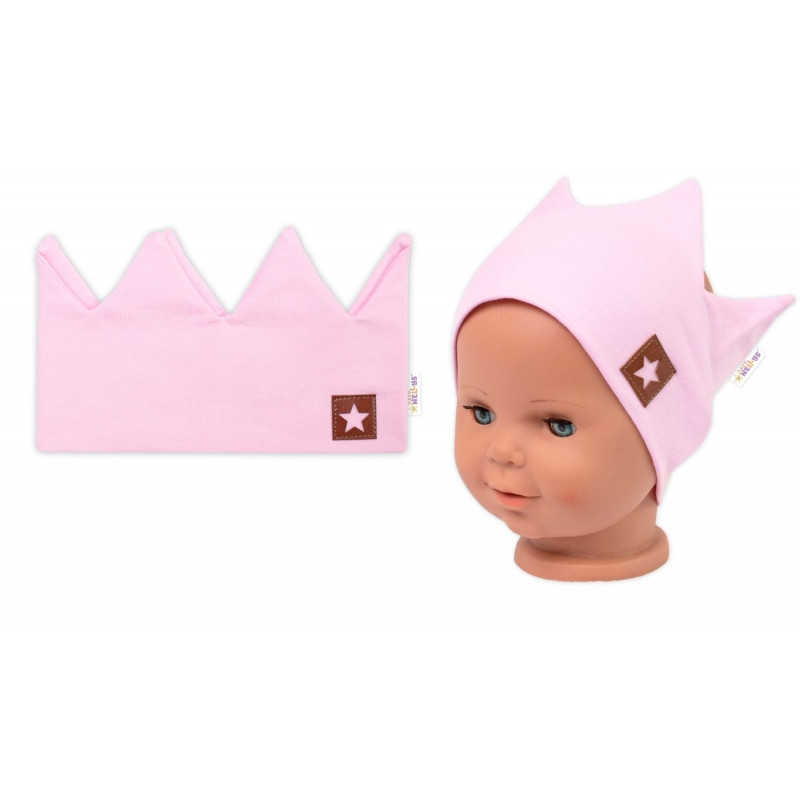 Dvojvrstvová čelenka, Hand Made, bavlna, Korunka STAR - sv. růžová, 104/116