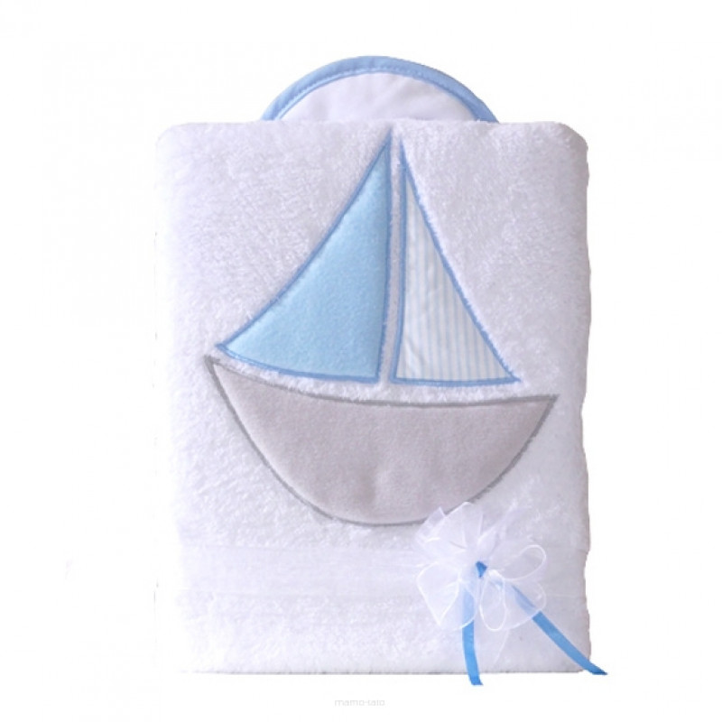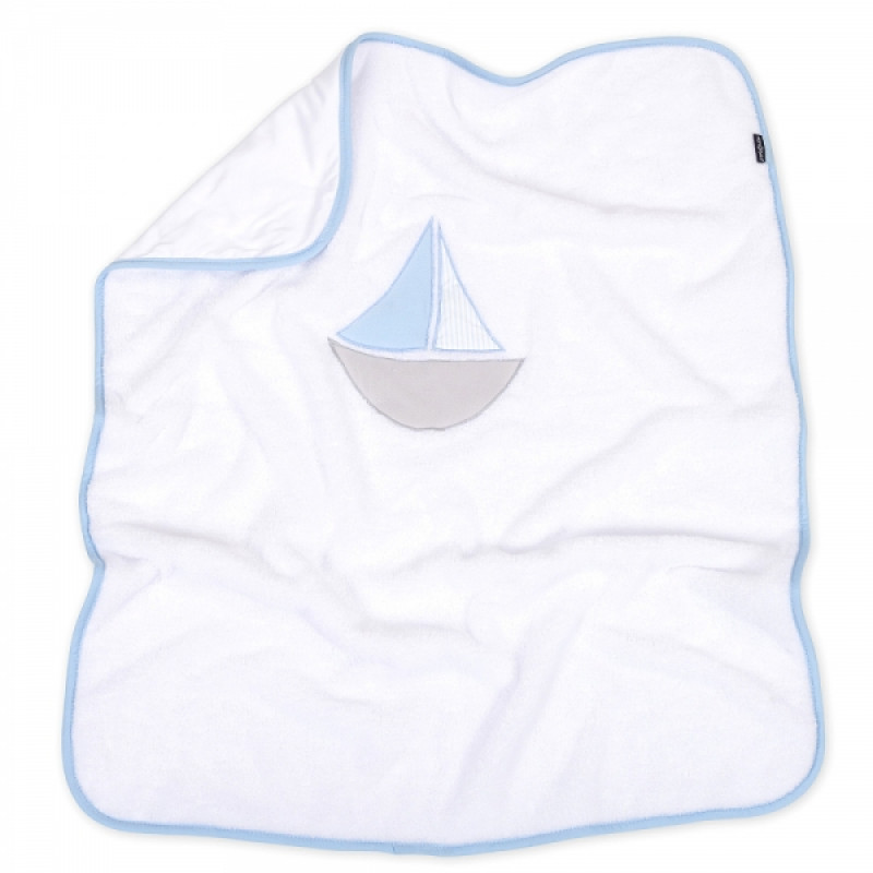Obojstranná chlpáčková dečka s vyšívkou 75 x 90 cm, Lodička, biela/modrá