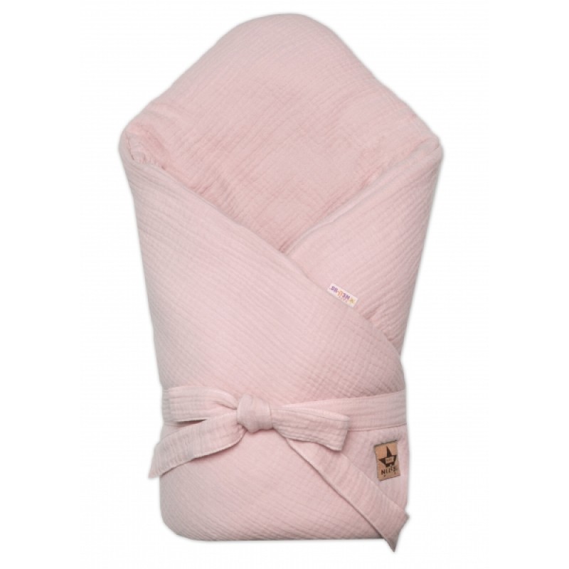 Mušelínová zavinovačka na zaväzovanie, Baby Nellys, 75x75cm, púdrovo ružová