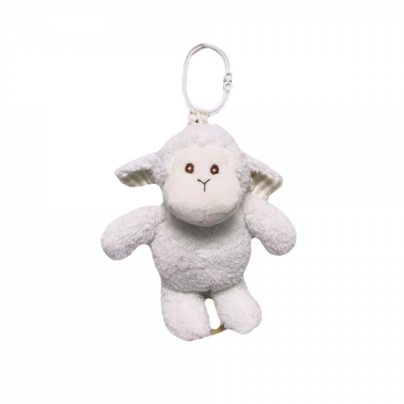 Závesná plyšová hračka s melódiou, Ovečka, 18 cm - smotanovo biela