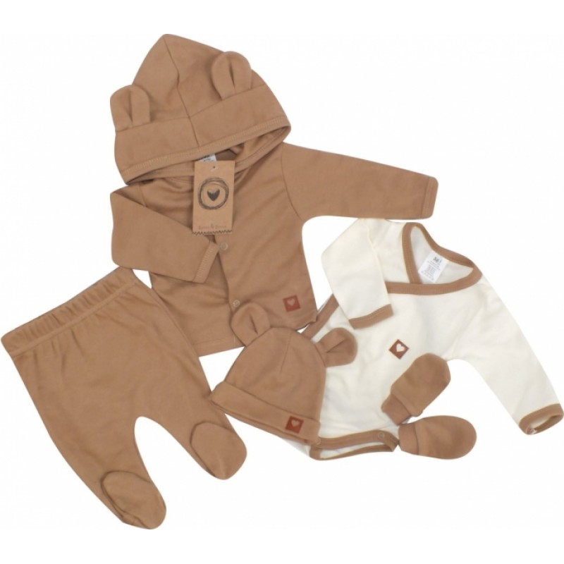 Sada do pôrodnice 5D, body, polodupačky, kabátik, čiapočka, rukavičky - hnedá