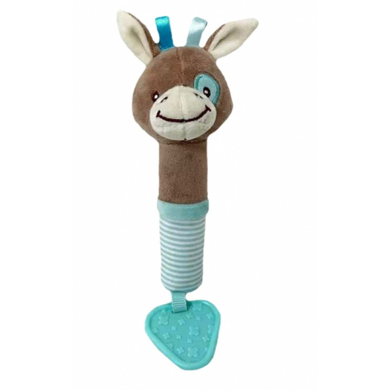 Plyšová hračka s pískatkom a hryzátkom Somárik, 17 cm - modrá, hnedá