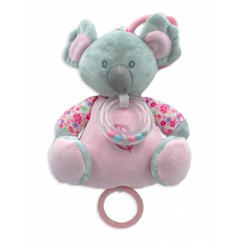 Závesná plyšová hračka s hrkálkou Koala 18 cm - šedá/růžová